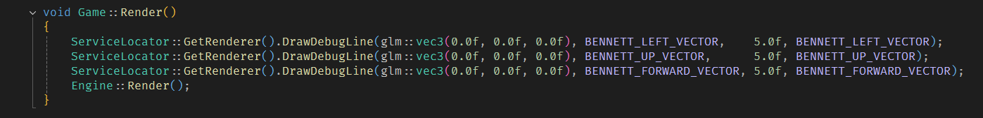 In terms of debugging, the engine currently contains a set of line and circle drawing functions, a set of hard-coded auto-loaded primatives, including quads, cubes and spheres, that act as default shapes and a very brightly coloured logging system that let's you know when things aren't going so well...