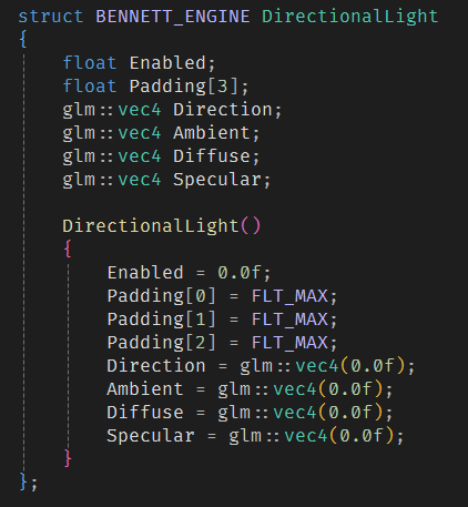 The engine contains support for Point, Directional and Spot lights. It can currently support 8 of each concurrently but this number can be changed within the engine project along with a recompile. The lights are found within the renderer's uniform buffer and are updated at the start of each frame's rendering.